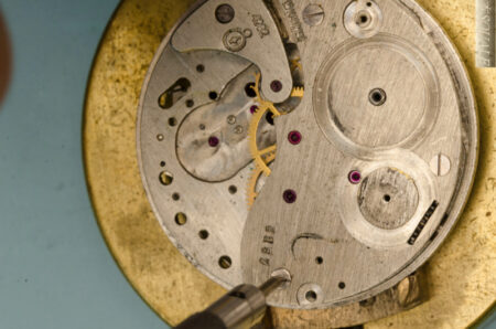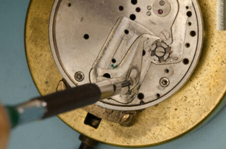 Marquage sur le mécanisme : logo Agat et 4282 sur un pont, 9157 et 15 камней sur la platine
