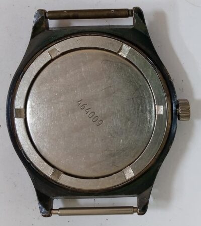 Boîtier de laiton chromé à fond clipsé, délibérément surdimensionné par rapport au mécanisme conçu initialement pour les montres de dame.