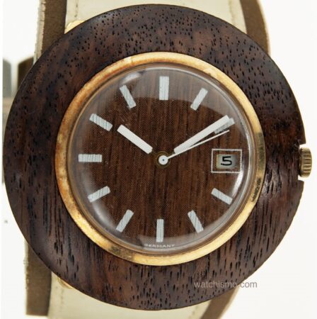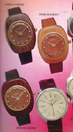 Quoi qu’il en soit, la tendance esthétique de fabriquer des montres avec des boîtiers en bois ou d’autres composants du même matériau a refait surface au cours des années 1970, comme on peut le voir avec cette Swank des années ’60: