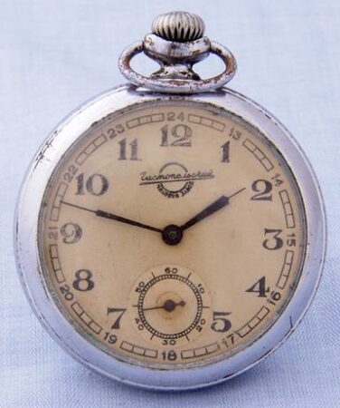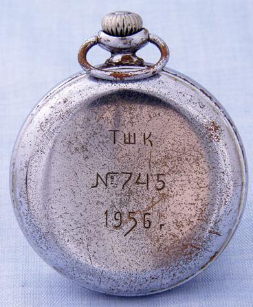 Montre de poche de la Fabrique de Montres de TchistopolMécanisme: Variante du Type-1 désignée ЧК-6Produite le 4 trimestre 1948N° de série 510282N° d’inventaire gravé sur le fond: N° 745 (avec l’année: 1956).
