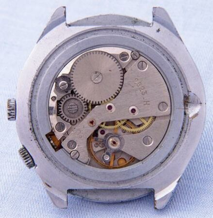 Mentions sur le calibre : 2623.H, SU (soviet union) sur le pont, logo Raketa (raquette symbolisée) sur la platine).