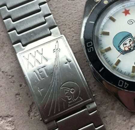 En 1991 est produit ce bracelet (12mm) célébrant les 30 ans de l’homme dans l’espace (XXX человек космос):