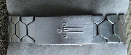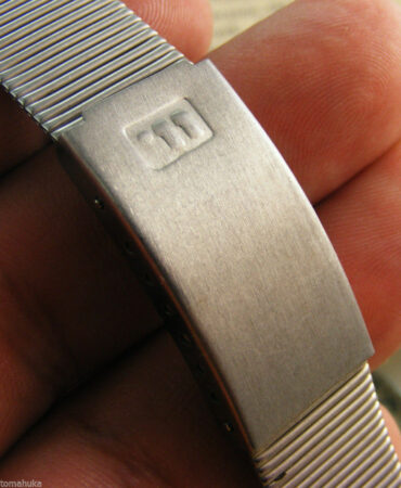Cette fabrique a produit de nombreux bracelets, en acier inox parfois doré au nitrure de titane, et notamment les bracelets qui accompagnaient les montres Elektronika. D’abord avec ce premier logo: