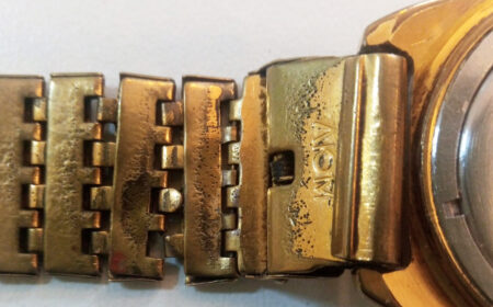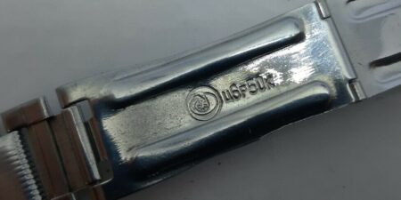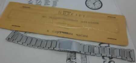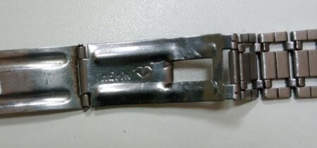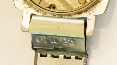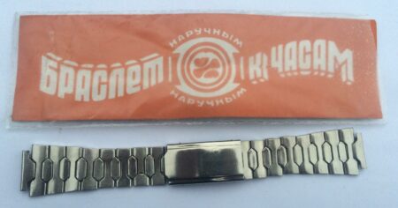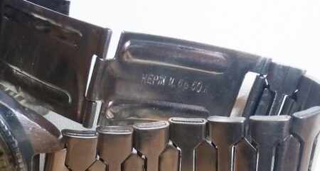 Bracelet d’origine pour une Luch, solidaire du boitier, avec un marquage qui n’est pas celui de la Fabrique de Minsk: