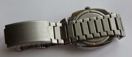 Le bracelet avec la boucle déployante lisse à l’extérieur et estampée à l’intérieur du logo de la Fabrique « Segment », de la mention нерж (inox) et 5P50K (5 roubles 50 kopecks).