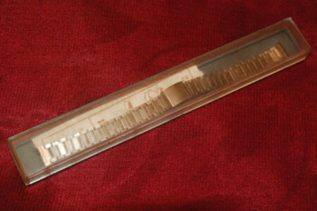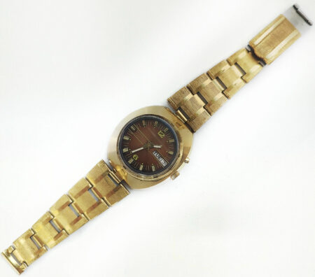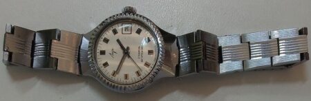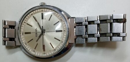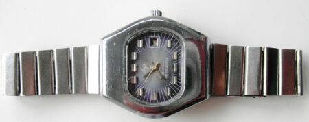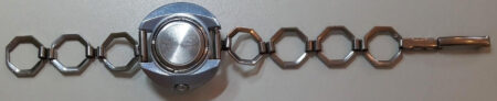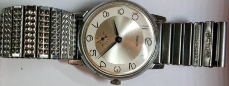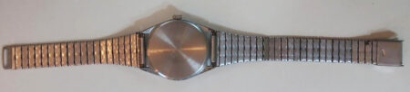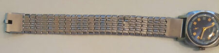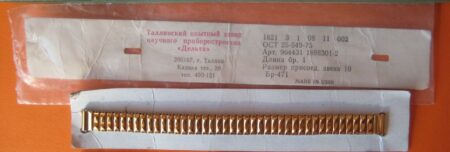Un bracelet type filoflex de la Fabrique expérimentale d’instrumentation scientifique « Delta » de Tallinn (таллинский опытиый завод наyчного приборостроения « дельта »). Il s’agit clairement d’une production de la Perestroïka et de la fin de l’URSS, quand les usines de pointe liée au complexe militaro-industriel se sont mises à produire des biens de grande consommation.