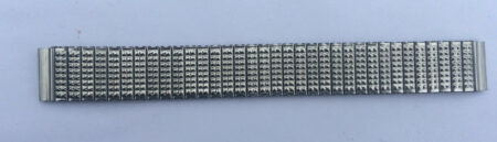 Remarquable bracelet métallique à fermeture papillon coulisse, 8mm, portant sur la boucle la mention москва / арт очк / оправа / 1959 г . (Moscou / Art[el] OTchK / Оprava [le cadre, le châssis, la monture…] / Année 1959).