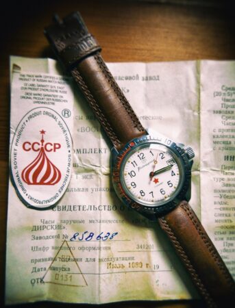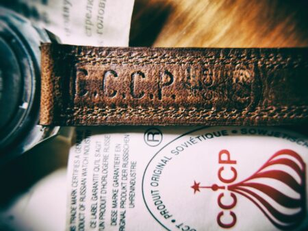 A la fin des années ’80, les montres exportées en Europe recevaient en Italie des bracelets conçus et produits sur place. De bonne qualité, ils portaient généralement la mention CCCP