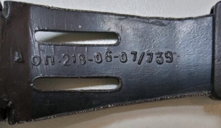 Bracelet en plastique noir d’une fabrique inconnue, marqué Ч 1-50 d’un côté etПО 218-06-07/759 de l’autre:
