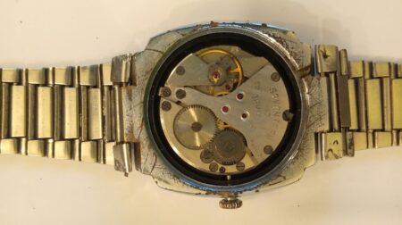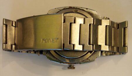 Mentions sur le calibre : 2614.2H, seventeen 17 jewels, SU (sur le pont), logo Poljot (couronne) sur la platine