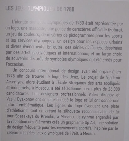 Le cadran est bleu, chaque heure est marquée d’un disque blanc avec un pictogramme bleu représentant un sport olympique. Outre la marque, l’horloge porte au dessus de l’axe des aiguilles le symbole de qualité de l’URSS et, au dessous, le logo des Jeux olympiques de Moscou de 1980.