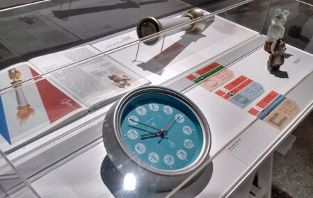 Un exemplaire de cette horloge figurait dans l’exposition sur le design soviétique qui, à l’initiative du Moscow Design Museum, a tourné dans de nombreux pays. La voici photographiée lors du passage de l’exposition en Belgique, à l’ADAM – Brussels Design Museum, en 2018.