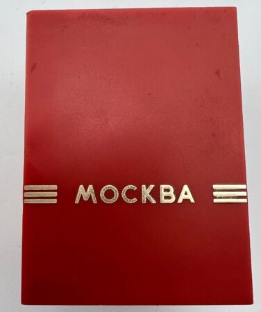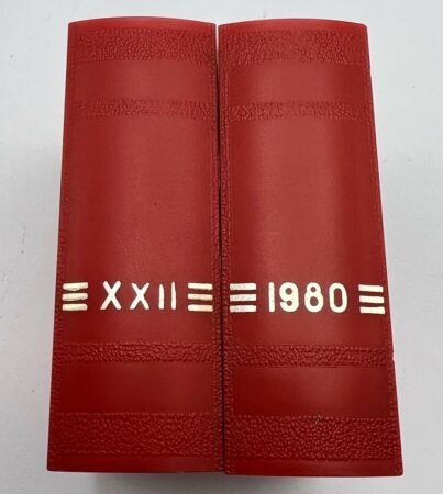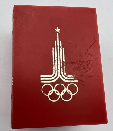 Boîtier en plastique imitant un livre portant les mention « Moscou 80 » et « XXII » (pour 22e olympiade)