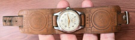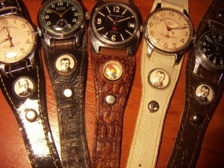 Un autre: « Je me souviens de ces bracelets de mon enfance, surtout celui avec la boussole. Mon père et mon frère avaient l’habitude de porter leurs montres sur ces bracelets. La qualité du cuir dans lequel ils étaient fabriqués était bien meilleure et ils étaient plus solides. J’ai même recousu le bracelet de mon frère alors que les fils étaient effilochés et que le cuir était intact. Le résultat est magnifique : des fils jaunes sur un bracelet marron, la montre était une « Zaria Junost« . J’ai une paire de bracelets vernis contemporains avec la boussole et le Gagarine, mais ils sont faits d’une sorte de dermantine, fine et pourtant rigide et courte. Vous ne voudriez pas porter une montre sur eux ». (watch.ru)