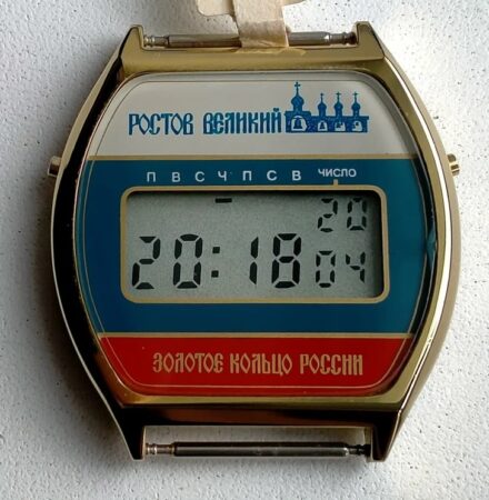 Le motif sur la montre représente le beffroi du kremlin de Rostov. Construit au XVIIe siècle, il est couronnée de quatre dômes. La plus grande des cloches a reçu le nom de « Sysoy » en l’honneur du père du métropolite Jonah de Rostov. Il a été coulé à la fin du XVIIe siècle et pèse 32 tonnes.