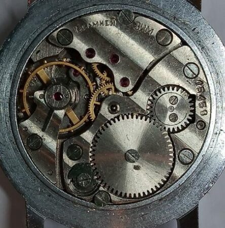 Mentions sur le calibre : N° de série (15458) sur un pont, ЗИМ et 15 камней (15 rubis) sur la platine. Côtes de Genève.