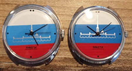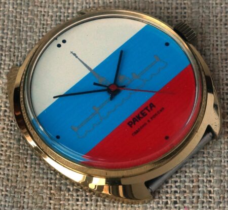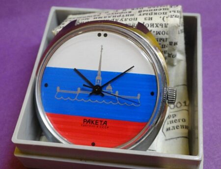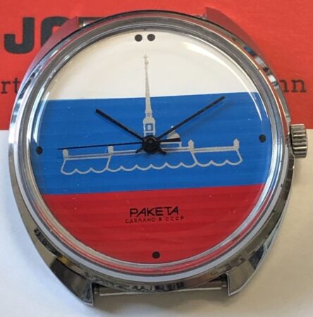 Le cadran associe la silhouette de la forteresse Pierre-et-Paul au drapeau tricolore qui, en 1991, devient celui de ce qui est encore République socialiste soviétique fédérative de Russie (en 1993: Fédération de Russie).