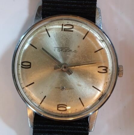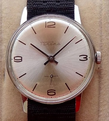 Mentions sur le cadran : cделано в cccp (fabriqué en URSS, à six heures)