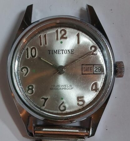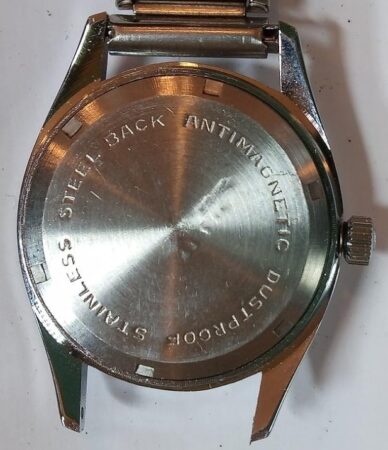 Gravure sur le fond : BASE METAL STEEL STAINLESS BACK DUSTPROOF, en cercle, à l’extérieur, et TT. LTD HONG KONG à l’intérieur