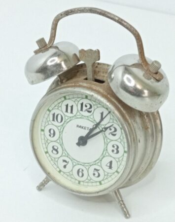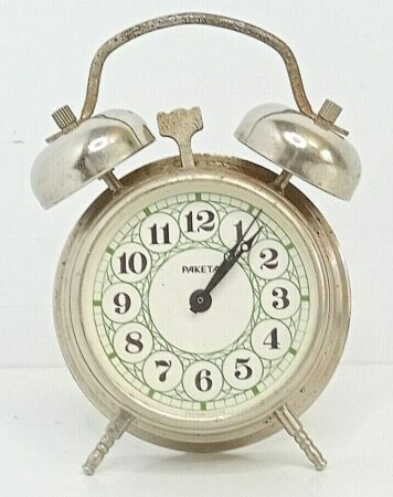 Petit réveil conçu autour d’un mécanisme de montre par la Fabrique de Montres de PetrodvoretsMarque: RaketaVariation du modèle 3871/1041244Mécanisme 3871 à 19 rubisLargeur: 5,5 cmProfondeur: 3 cmHauteur : 9 cm