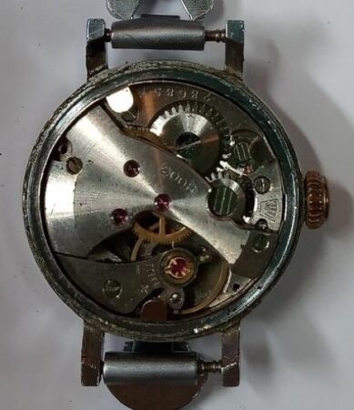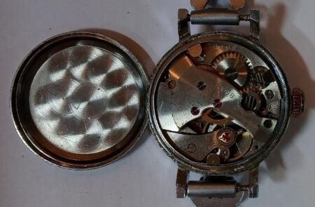 Mentions sur le calibre : ancien logo 3аря (en éventail) et n° de série (286851) sur le mécanisme, 2008 sur le pont