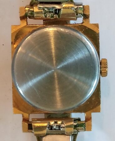 Boîtier carré, de laiton plaqué or (poinçon AU10/CD sur la tranche inférieure) à fond clipsé