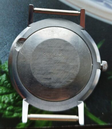 Mentions sur le cadran : shockproof 23 steine à six heures (antichoc, 23 rubis) sous l’axe des aiguilles