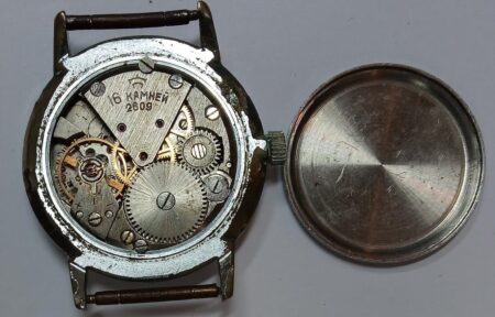 Mentions sur le calibre : n° de série (92024) sur la platine, 2609 et logo de Raketa (la raquette symbolisée) sur le pont