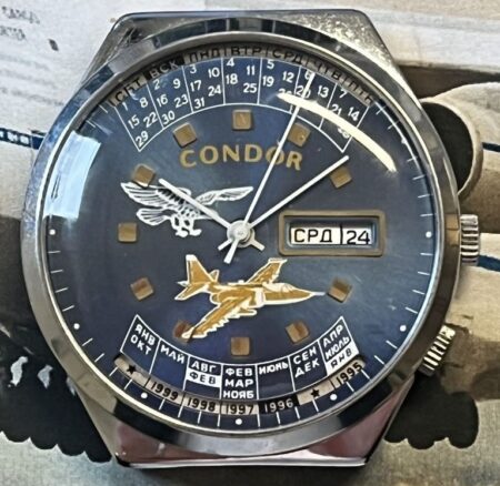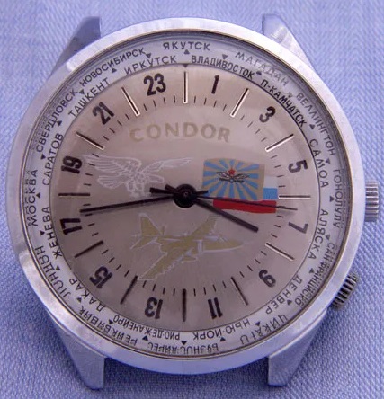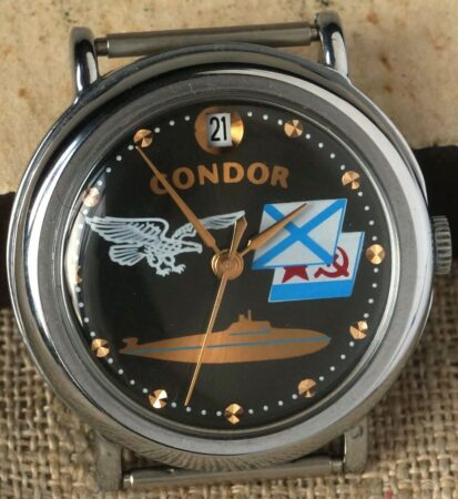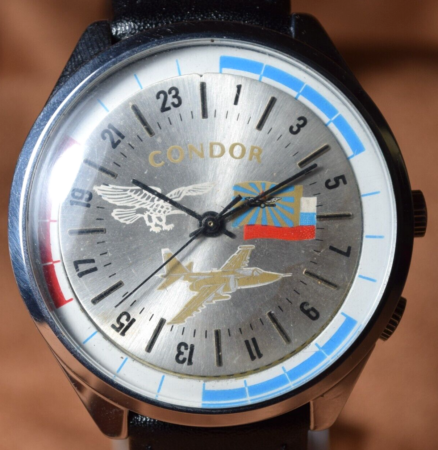 La marque Condor a aussi été adoptée dans les années ’70 pour une production de montre dans les possessions insulaires US emboîtant des Poljot 2409: voir ici