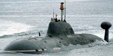 Elle porte la silhouette d’un sous-marin de type « Akula » (projet 971 «Chtchouka-B»):