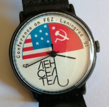 Cette montre a été produite à l’occasion de la Conférence sur la « Free Economic Zone » (FEZ) de Léningrad en 1991. Voir ici pour en savoir plus sur cette conférence.