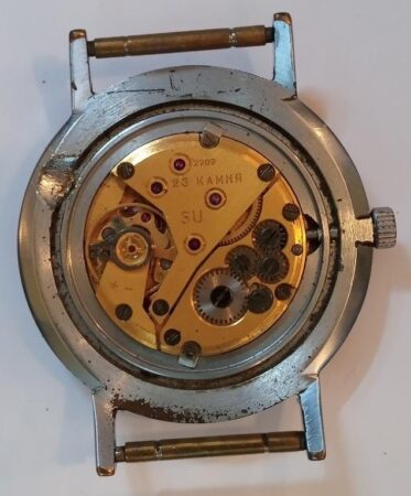 Mentions sur le calibre : logo Luch, 2209 et 23 камней et SU sur le pont