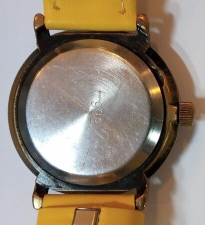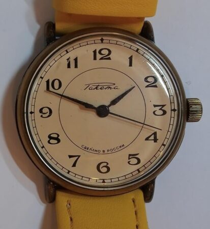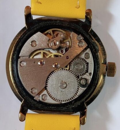 Exemple de montre de la période de transition dont le cadran porte déjà « fabriqué en Russie » (« сделано в России ») mais dont le mécanisme porte encore le SU le présentant comme produit en Union soviétique. Ce modèle avait été produit avant 1992 avec la mention « fabriqué en URSS » (« cделано в CCCP »): voir ici
