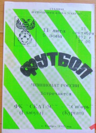 Ci-dessous, un ticket du match Skat5s-Sibir (de la ville Kourgan) du 18 septembre 1992: