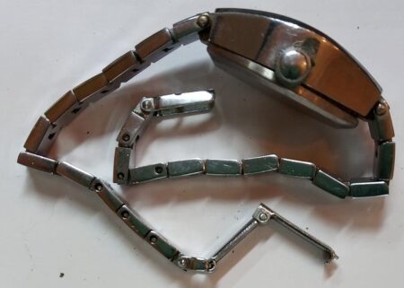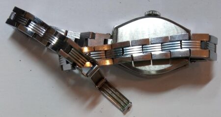 Boîtier de laiton chromé, avec bracelet articulé, à fond clipsé