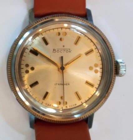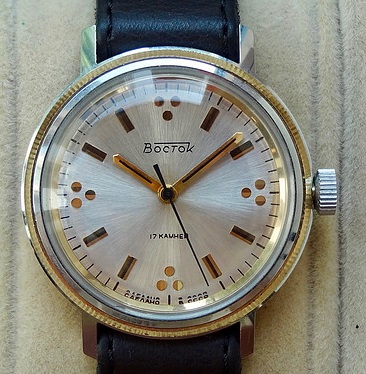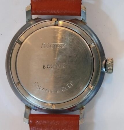 Mentions sur le calibre : logo Vostok sur la platine (B sans un cercle).