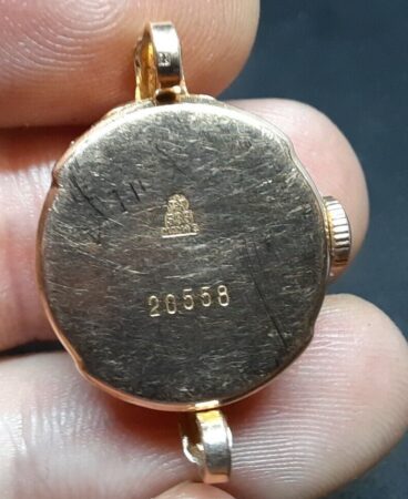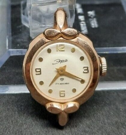 Avec le poinçon 583 indiquant de l’or 14 carats (un taux 583,3333333 pour mille): voir ici les poinçons soviétiques