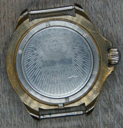 Pas de marque, mais modèle Kомандирские (Komandirskie, « Commandant ») avec le logo Vostok