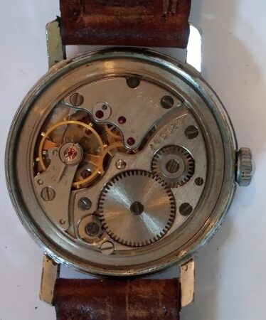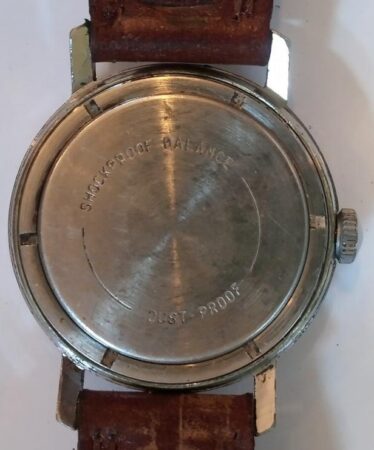 Gravure sur le fond : antishock balance (mouvement antichoc), dust-proof (étanche à la poussière). Perlage à l’intérieur.