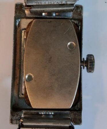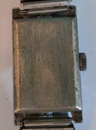 Boîtier rectangulaire, en laiton chromé, (il semblerait qu’il soit à l’origine à anses soudées mais qu’il ai été retravaillé pour supporter des pompes), à fond clipsé.