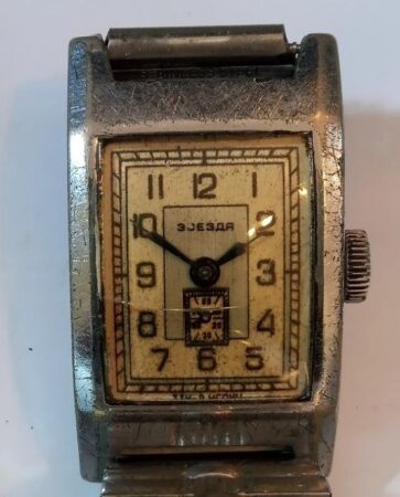 Le mécanisme n’avait alors pas de nom distinct de la montre: Zvezda (le rochet est marqué ainsi) ; c’est version soviétique du Lip T18 à 15 rubis qui sera appelé ultérieurement 1802.