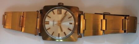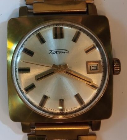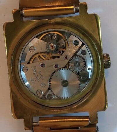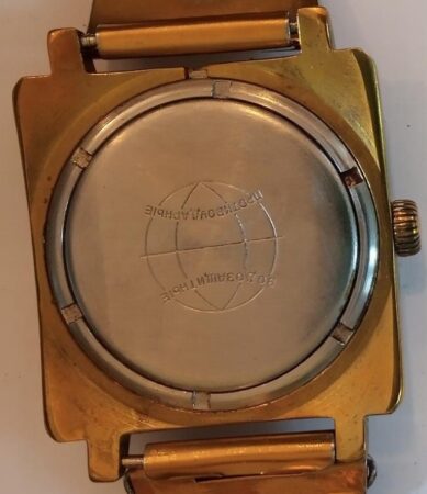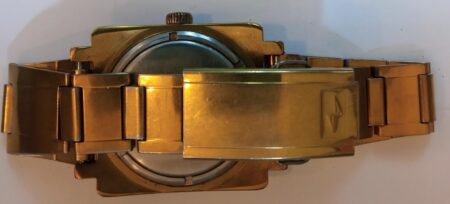 Bracelet soviétique, de métal doré, à boucle déployante, avec le logo de la Fabrique de pièces de montres de Vitebsk, et à l’intérieur de Ц8P. ( prix 8 roubles):