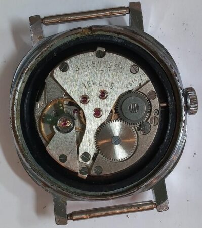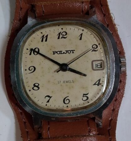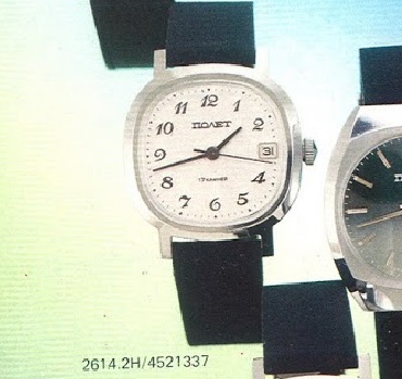 Mentions sur le calibre : dernier logo Poljot (couronne) sur la platine, SEVETEEN 17 JEWELS, SU, et 2614.2H sur le pont.