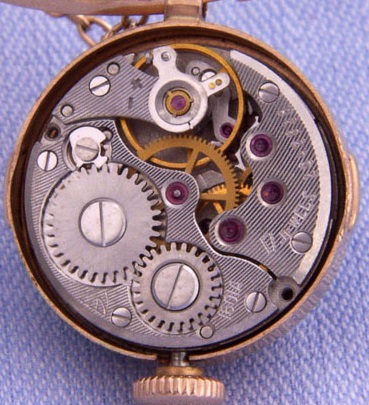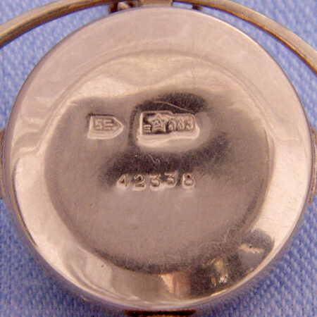 Gravure sur le fond : poinçons 42338 (n¨de la montre), 583 pour le taux d’or, E5 (pour Erevan)
