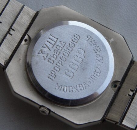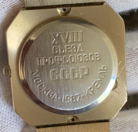 Gravure sur le fond : « XVIII съезд профсоюзов / СССР / Москва 1987 Кремль », « XVIIIe congrès des syndicats / URSS / Moscou 1987 Kremlin » (et à l’intérieur: 105885)