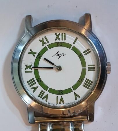Montre de la période de transition : le cadran porte déjà « fabriqué en Biélorussie » (СДЕЛАЛ В БЕЛАРУСИ) mais avec un mécanisme de Penza de facture soviétique (lui-même associant des pièces de différents batch de production).