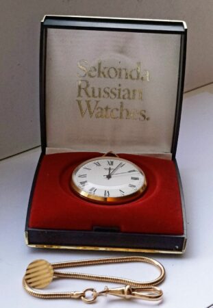 Montre mécanique, plaquée or, de poche pour l’exportation, de la Fabrique de Montres de Petrodvorets