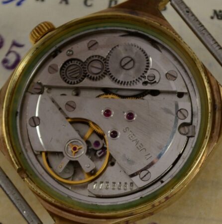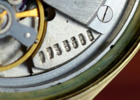 Mentions sur le calibre : n° de série (7735688) et 2609 sur la platine, 17 jewels sur un pont.