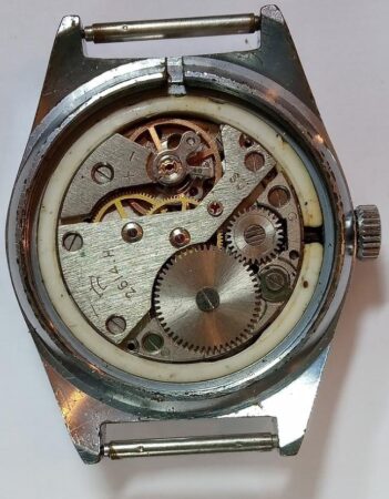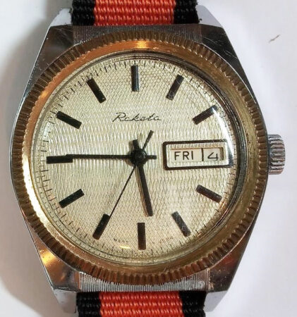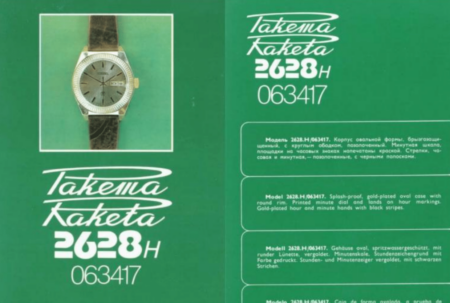Mentions sur le calibre : Logo de Raketa (la raquette symbolisée) sur la platine, 2614.H (!), logo et SU sur le pont