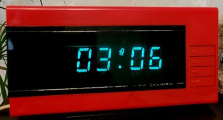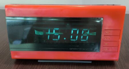 Réveil digital produit par la Fabrique Microcomposant d’Uchkeken.Modèle: Elektronika 6.15niAnnée de production: 1987
